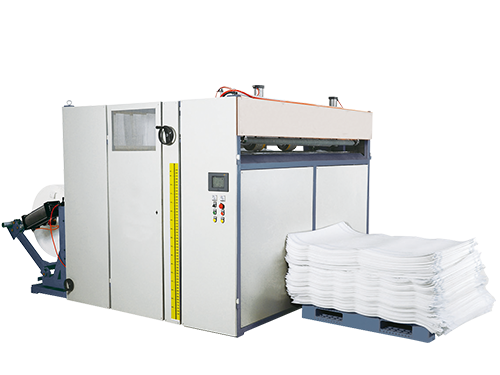 本機組主要適用于各種集裝袋的裁剪要求(除圓型底、蓋外),集多種功能于 一體。主要功能包括:裁剪筒料、 方型底、蓋,可在方型底、蓋上開圓孔及十 字孔;可裁剪 U 型袋的大片、小片、蓋。